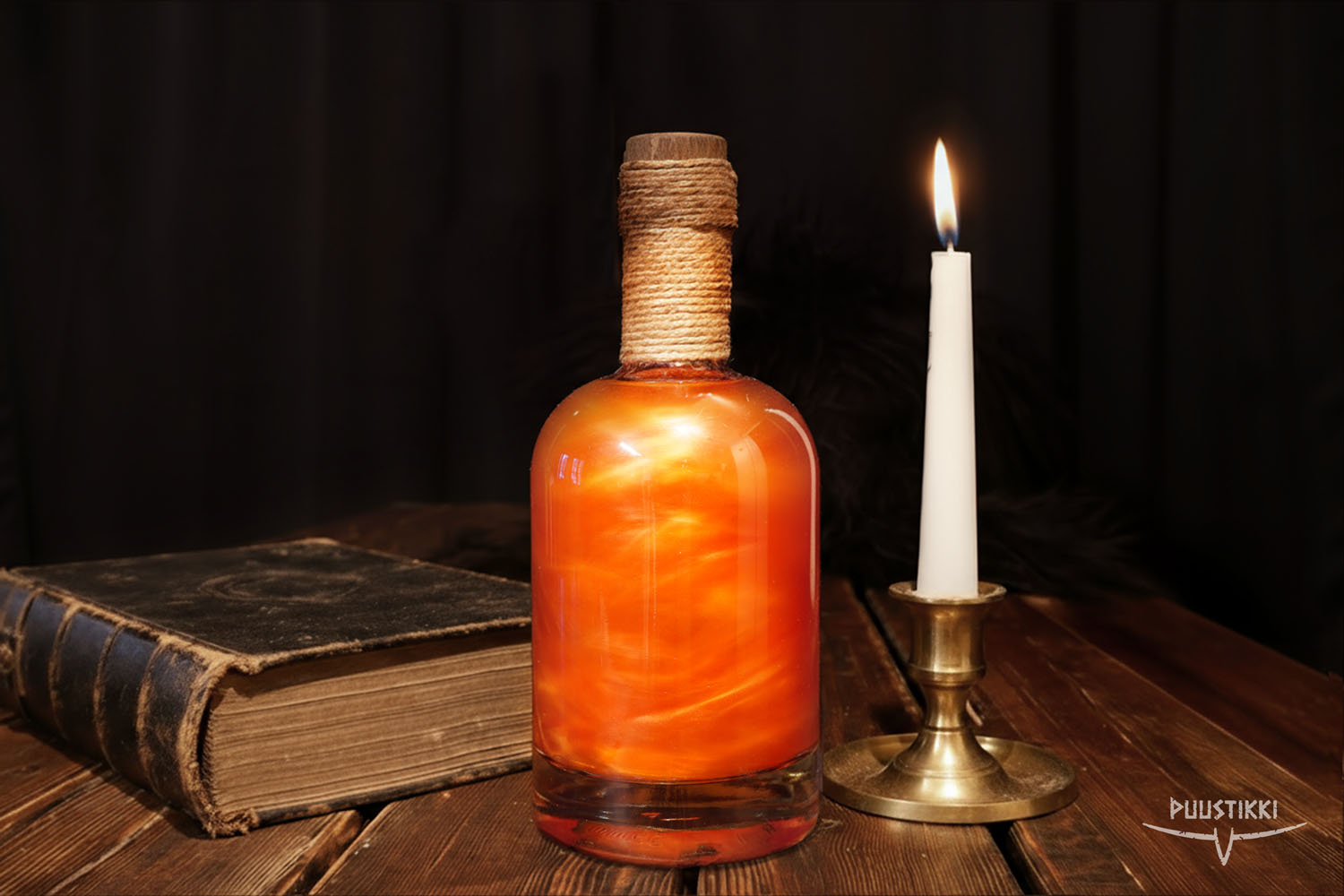 Tämä taikaliemi ei ole tarkoitettu nautittavaksi vaan sen voima on mielikuvituksessa. Se vie katsojan hetkessä fantasiapelien ja tarujen maailmaan, jossa jokainen pullo voi olla ratkaiseva seikkailijan kohtalon kannalta.
